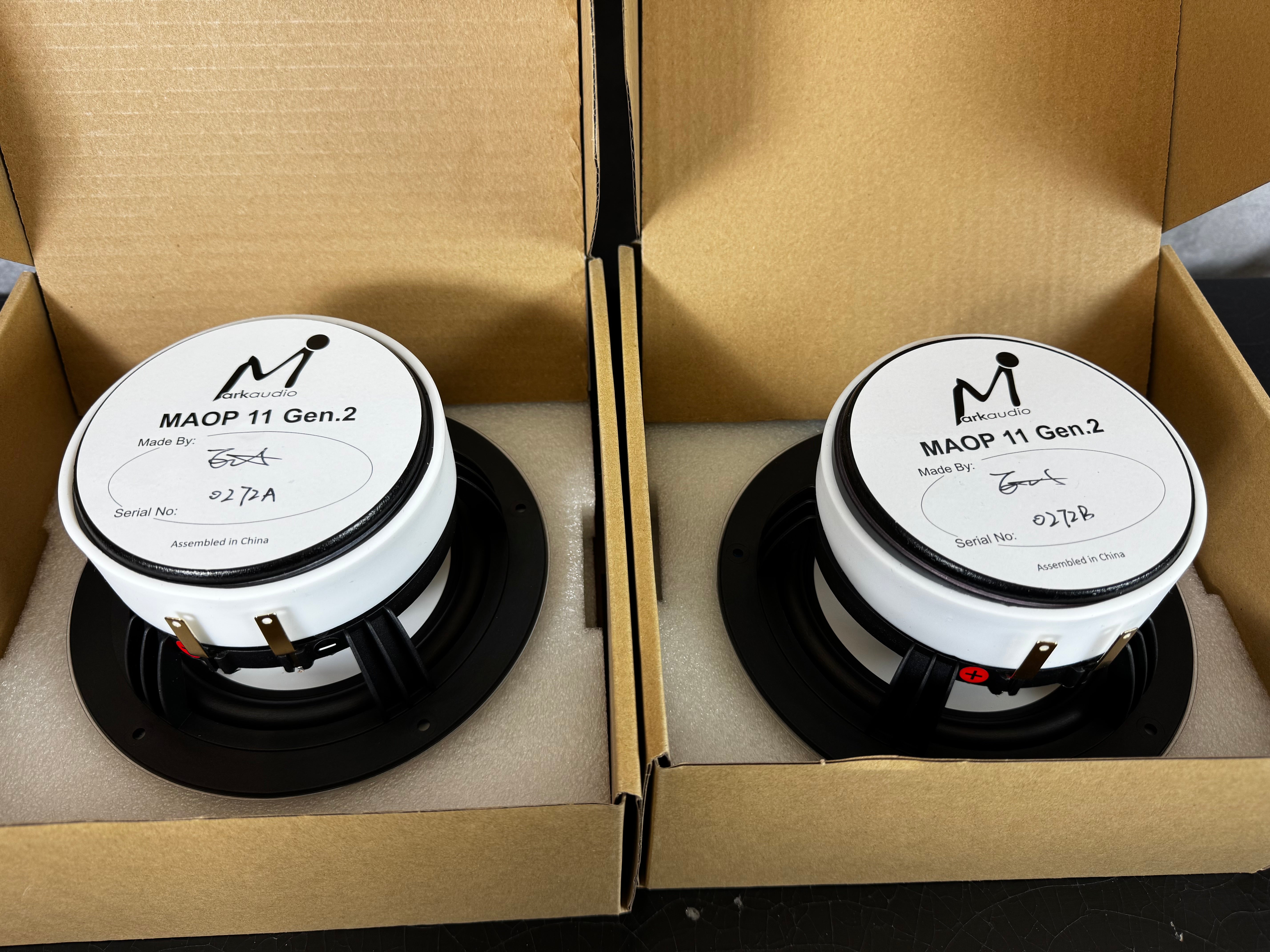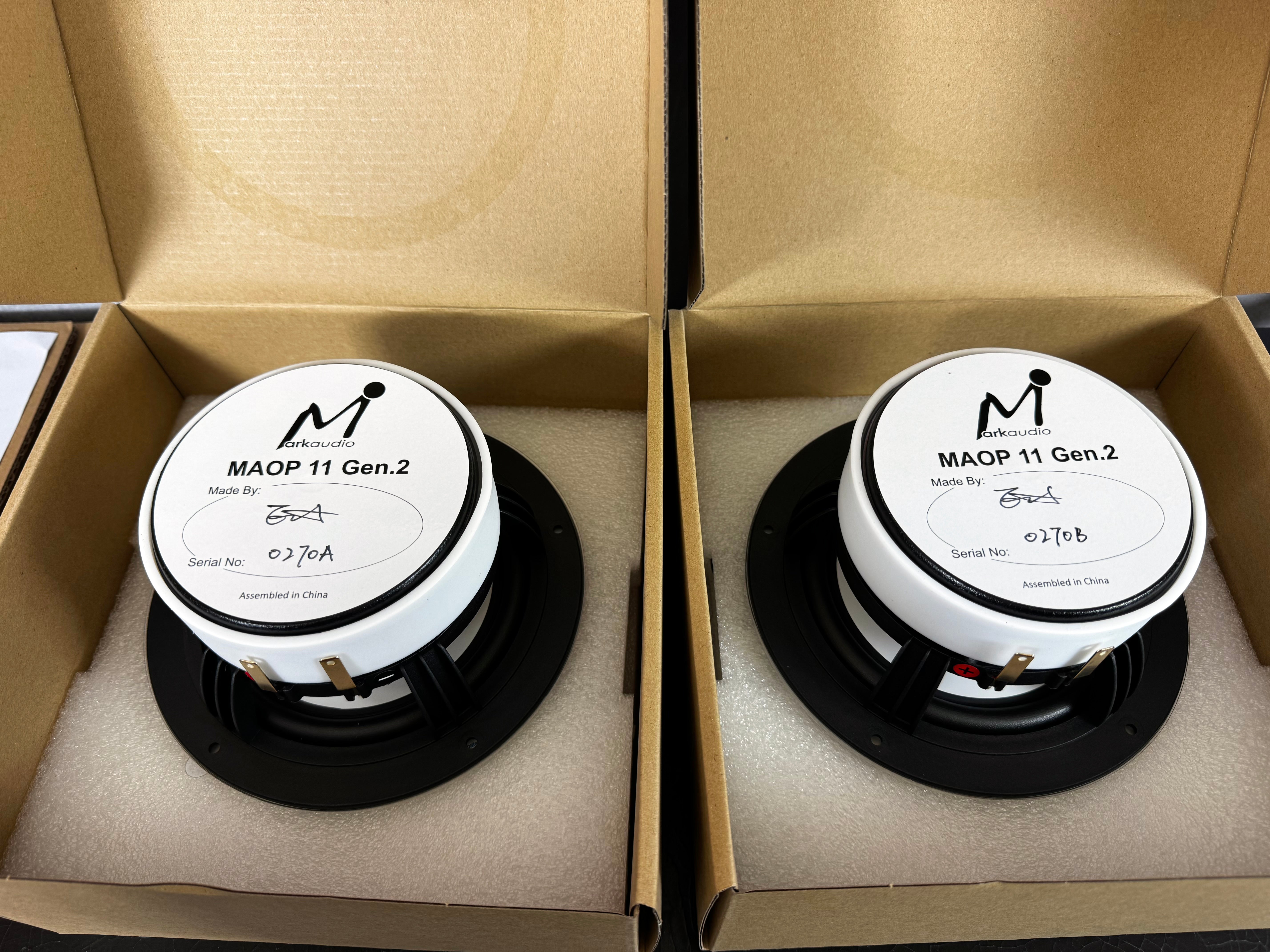 These 2 pair of MAOP11 drivers have never been used. They are new in the box units. I am getting out of the speaker building business. :)